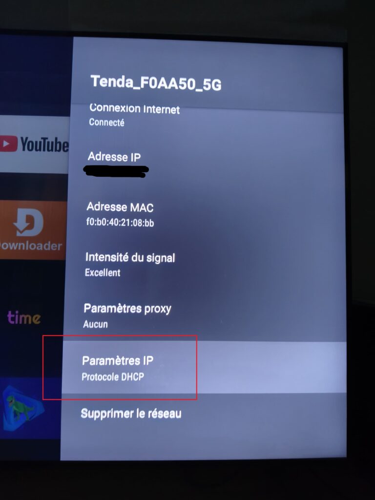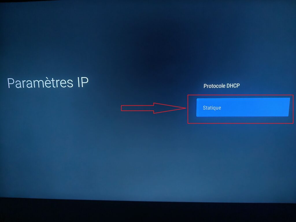 – Basculez de Protocole DHCP vers Statique et appuyez sur OK pour y accéder