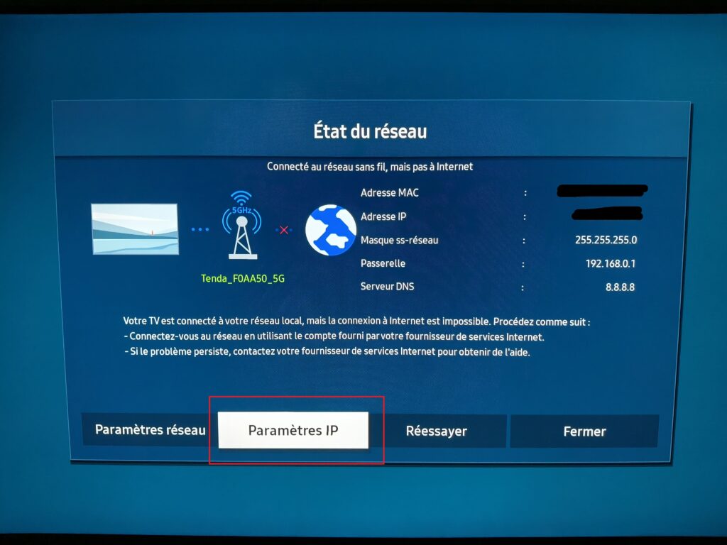 – Défilez vers le bas et sélectionnez Paramètres IP