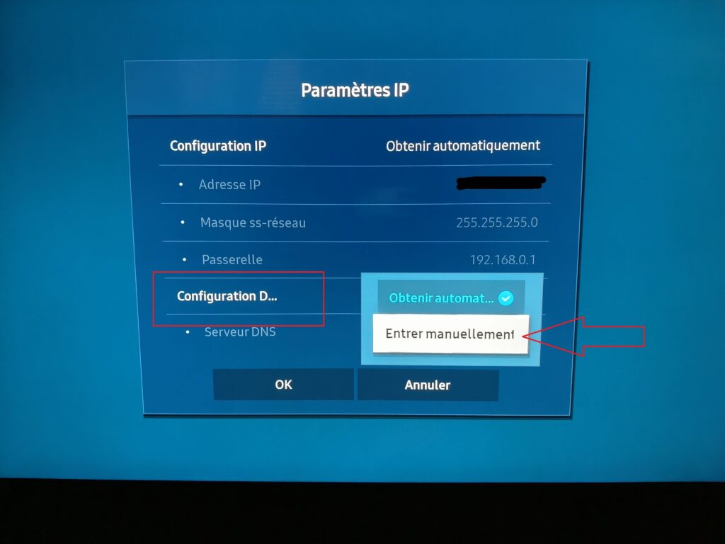 – Sélectionnez Configuration DNS, ensuite basculer sur Entrer manuellement