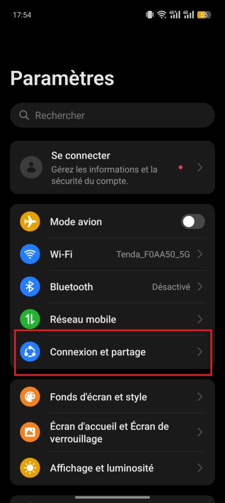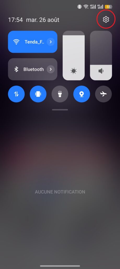 – Accédez aux paramètres en haut à droite de l’écran d’accueil