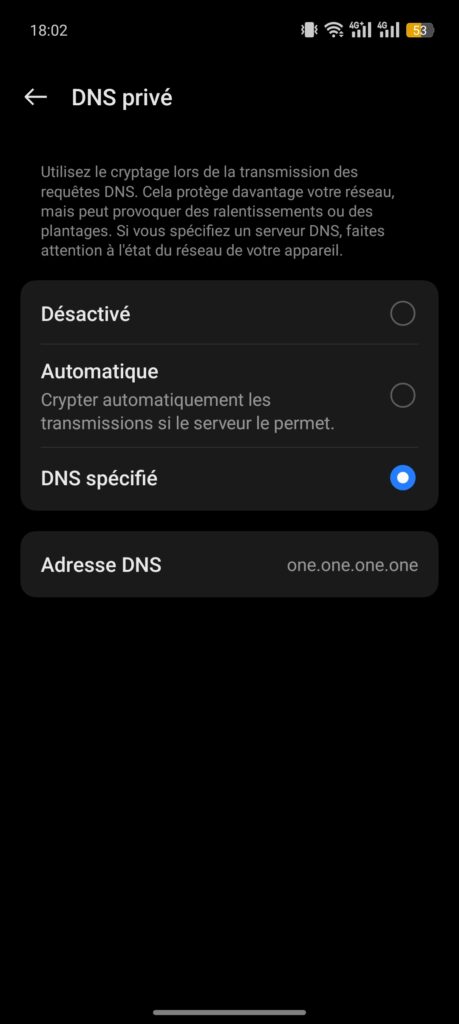 Si vous trouvez des soucis avec ce DNS mettez celui ci: 1.1.1.1
