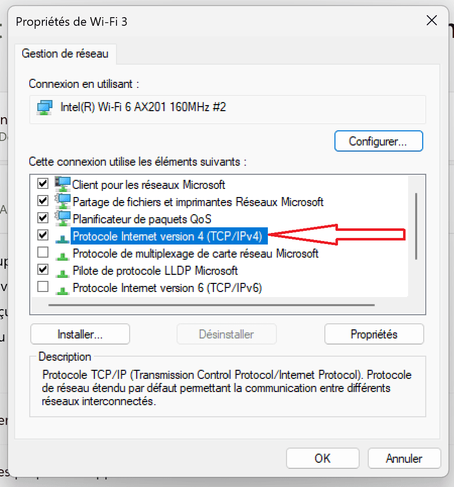 – Valider le tout en appuyant sur OK. Cela peut prendre quelques minutes pour que la connexion fonctionne à nouveau.